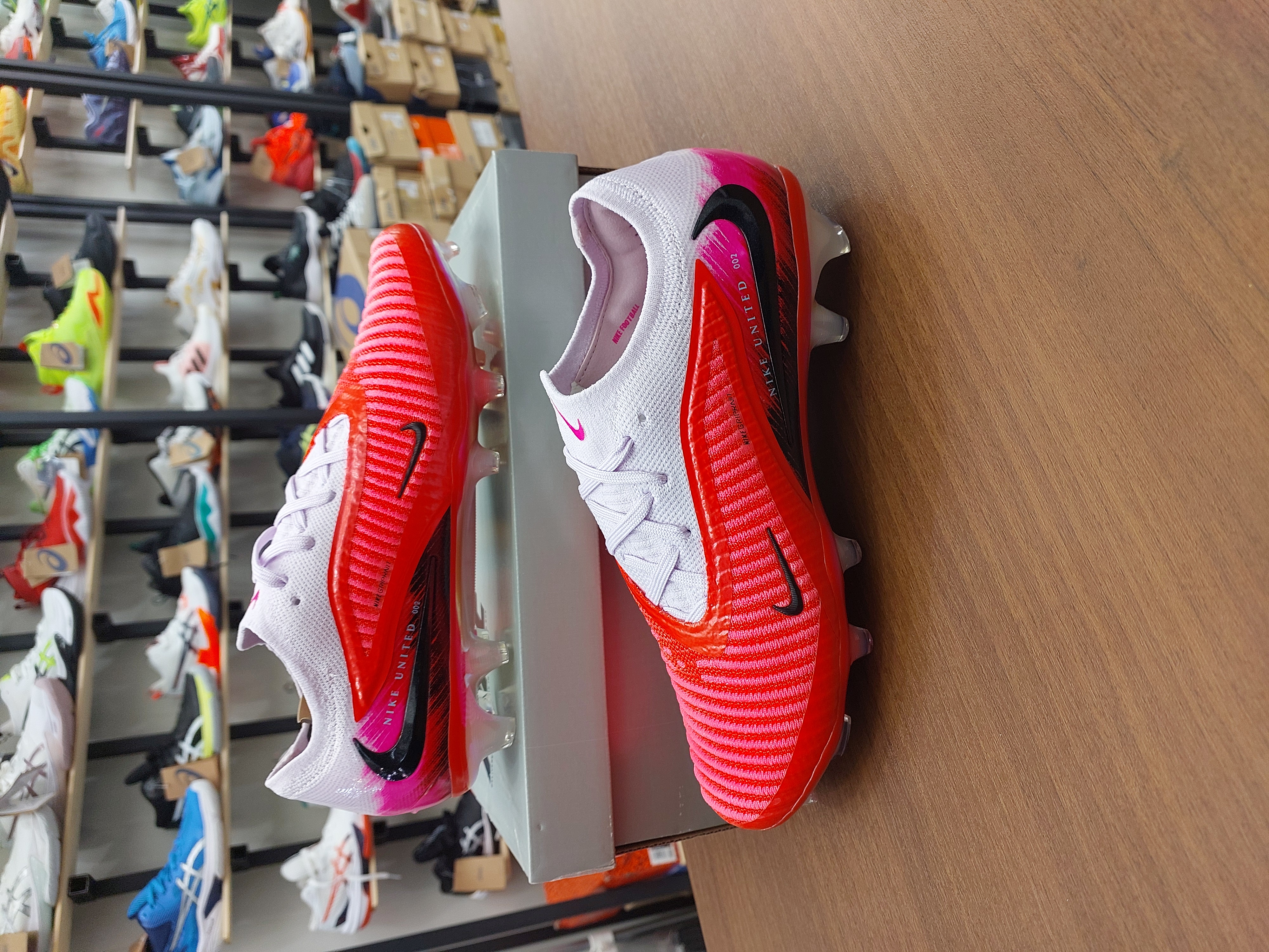 کفش فوتبال چمن نایک فانتوم گریپ کینت استوکدار جورابی بندی رنگ سفید صورتی بنفش