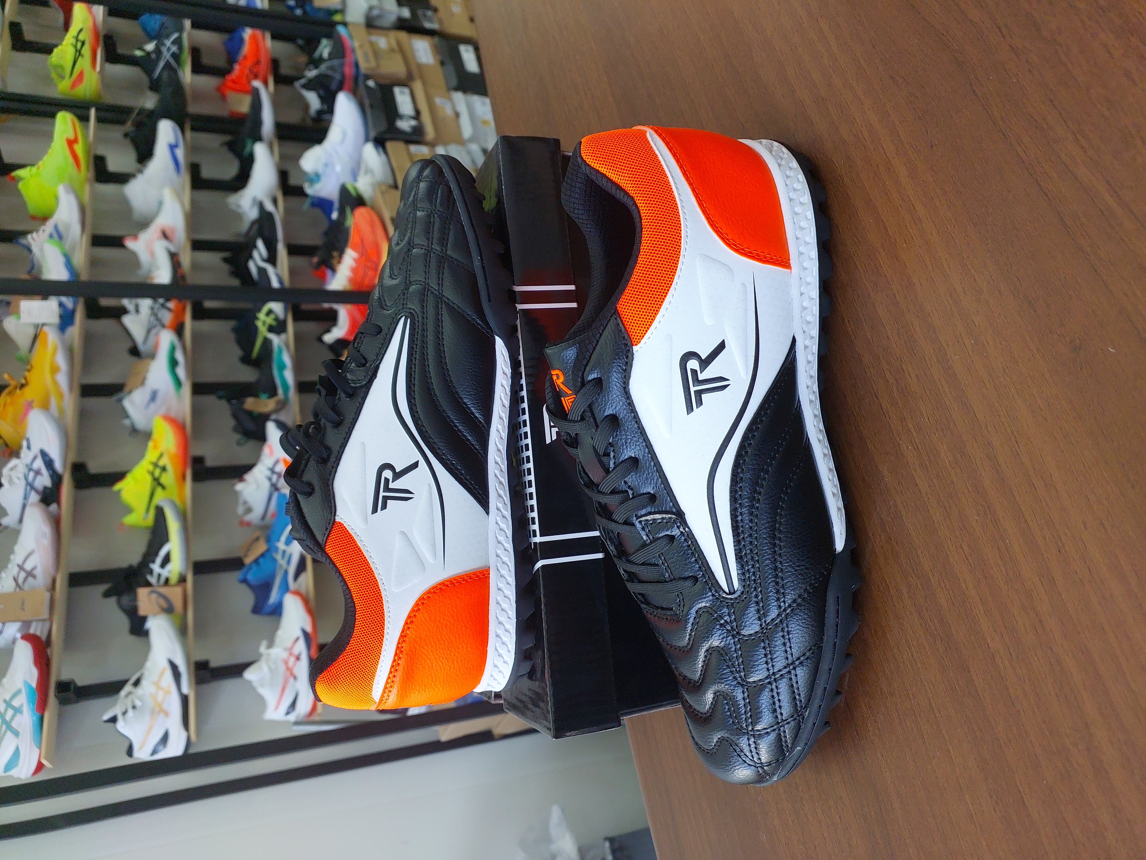 کفش فوتبال استوک ریز یا چمن مصنوعی تورف رنگ مشکی سفید نارنجی football shoes turf black white orange