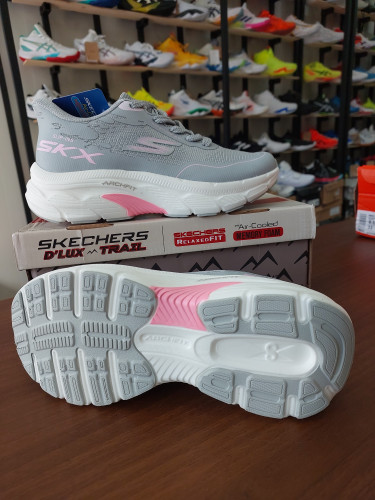 کتونی رانینگ اسکیچرز زنانه کیفیت مستر کوالیتی ویتنام رنگ طوسی سفید صورتی sketchers archfit skx